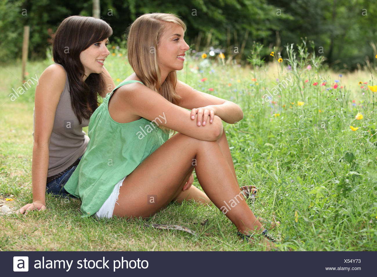 Две голенькие подружки в поле