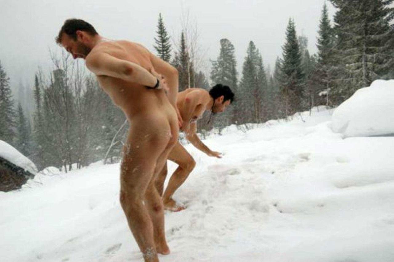Мужчины на снегу голышом
