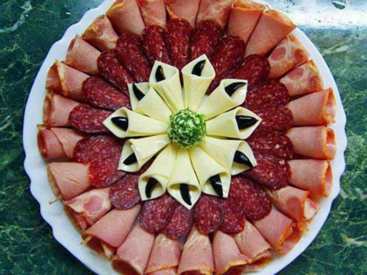 Сервировка колбасных изделий