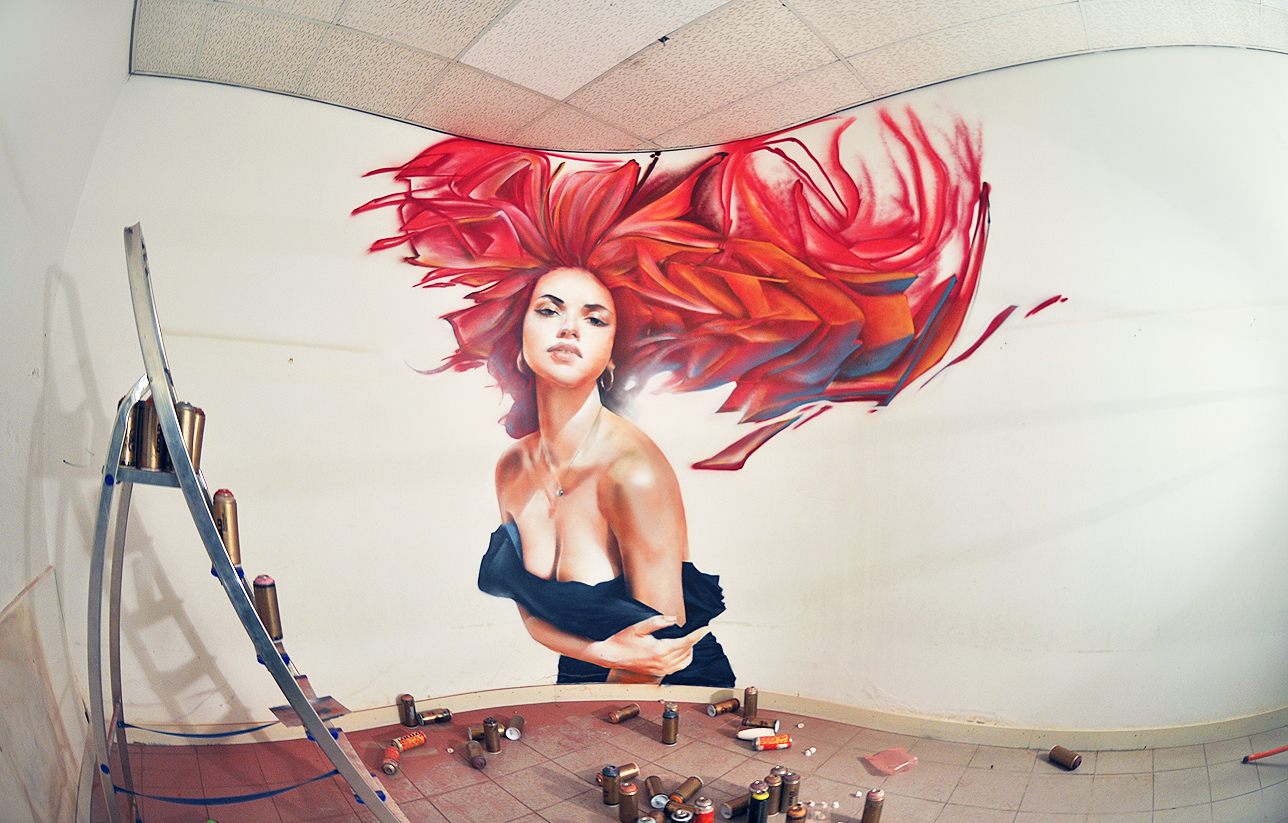 Девушка нарисованная на стене