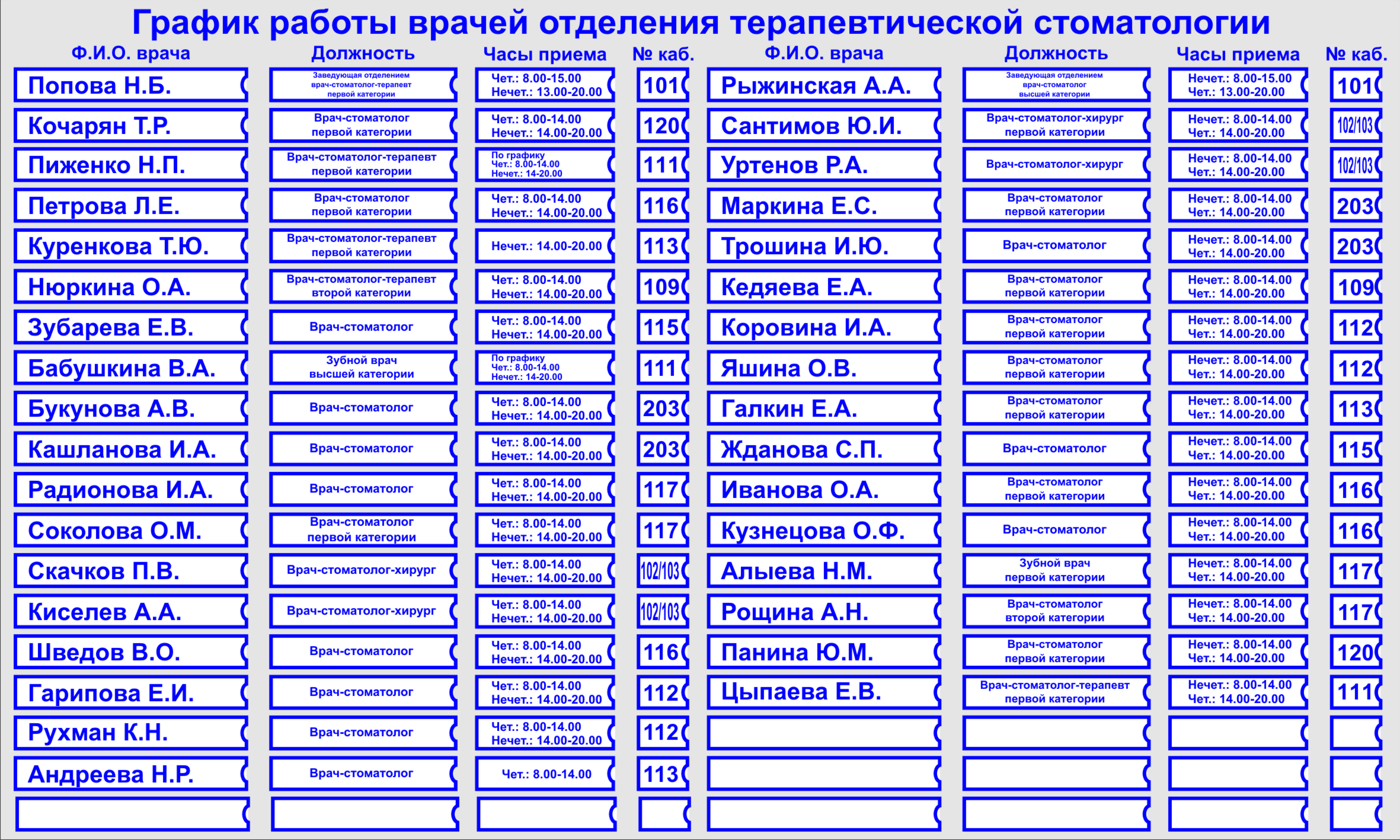 График работы врачей