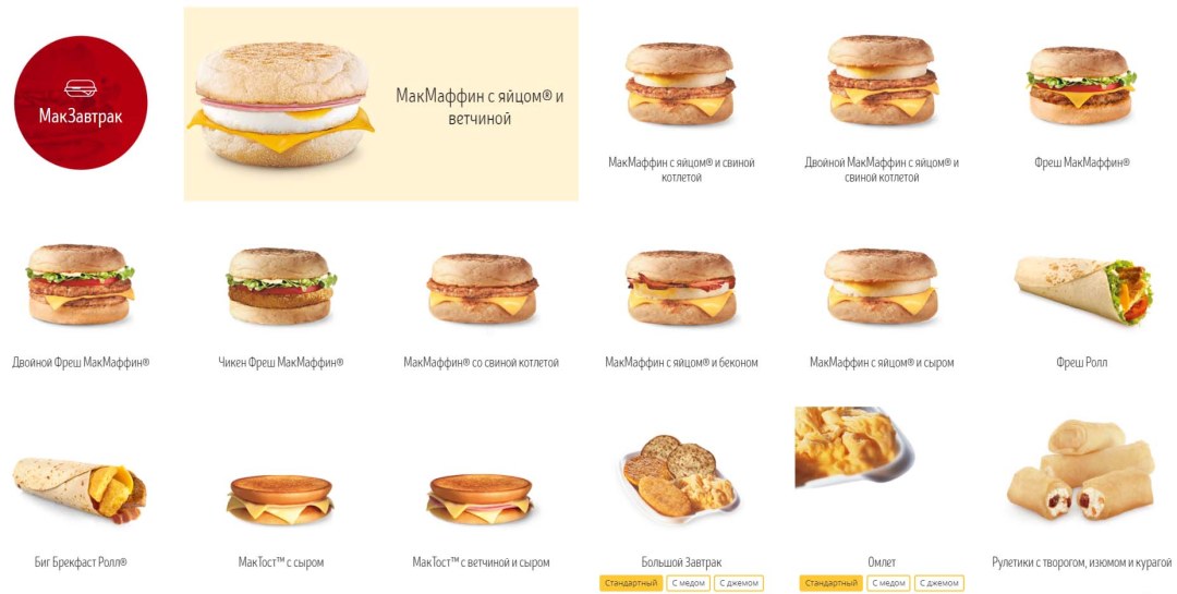 Menú de desayuno en McDonald's 2021