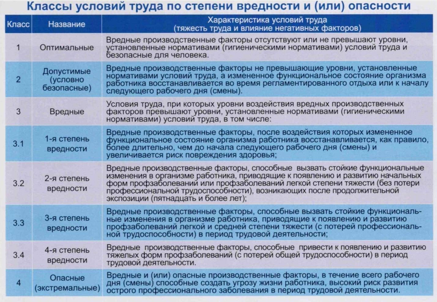 Clases de condiciones de trabajo dañinas