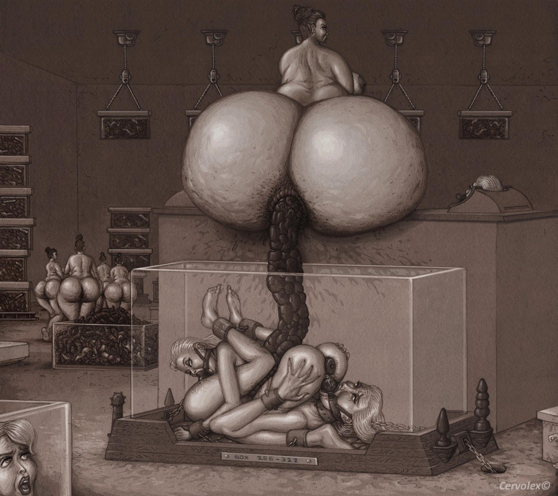 Una mujer caca a un esclavo en su boca