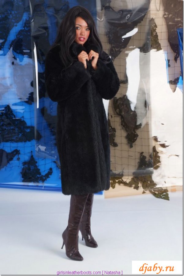 У черноволосой девушки очень красивая шуба. А под шубой - классное тело, одетое в дорогую черную шубку. Эта красивая сучка скинула свою черную шубку и оголила свои длинные гладкие ножки, а еще красивую попку, которую так и хочется погладить и облизать.