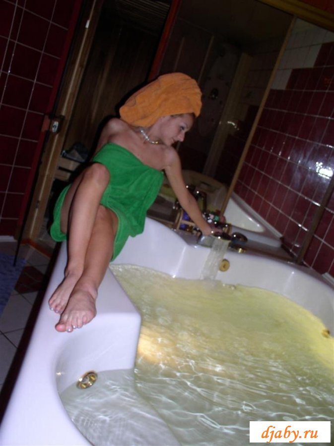 Телочка с полотенцем на голове сидит в теплой бане, потом она переходит в помещение, где стоит джакузи. Девочка очень хочет погрузиться в теплую воду и как следует расслабиться перед тем, как снова развлекаться с парнями в такой теплой и сухой парилке.